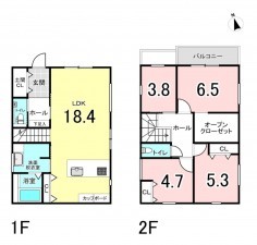 - システムキッチン、カウンターキッチン、食器洗浄乾燥機、床暖房、モニタ付インターホン、駐車場2台分、トイレ2箇所、ガス衣類乾燥機(乾太くん)