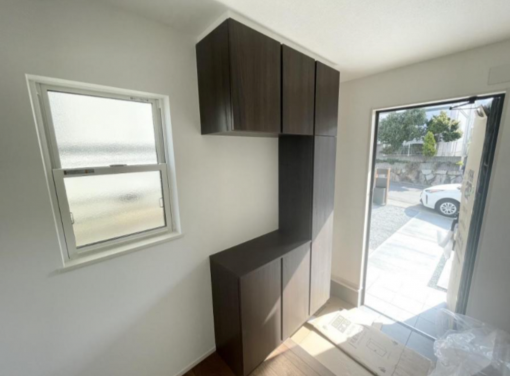 - システムキッチン、カウンターキッチン、シャンプードレッサー、洗浄便座、浴室乾燥機、複層ガラス、モニタ付インターホン、駐車場2台分、床下収納、トイレ2箇所、宅配ボックス付機能門柱